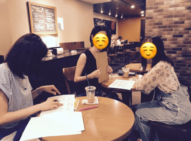 (みんなで開催した韓国語カフェの写真)